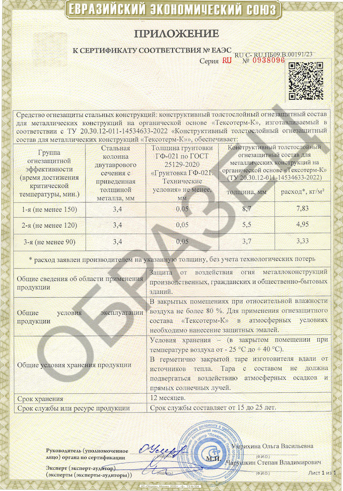 Тексотерм-К подходит для промышленных, гражданских и общественных объектов, обеспечивает долговечную конструктивную огнезащиту на срок до 25 лет внутри помещений и до 15 лет на открытом воздухе. Возможны методы нанесения: механизированное распыление, кисть или валик.