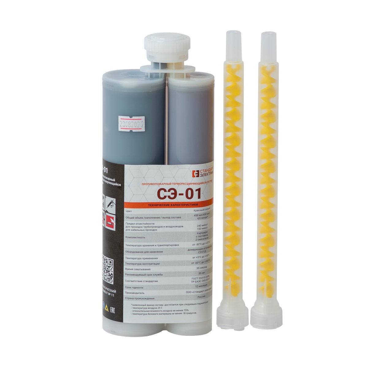 СЭ-01 — двухкомпонентная противопожарная пена (терморасширяющийся состав) для герметизации инженерных проходок, 430 мл.