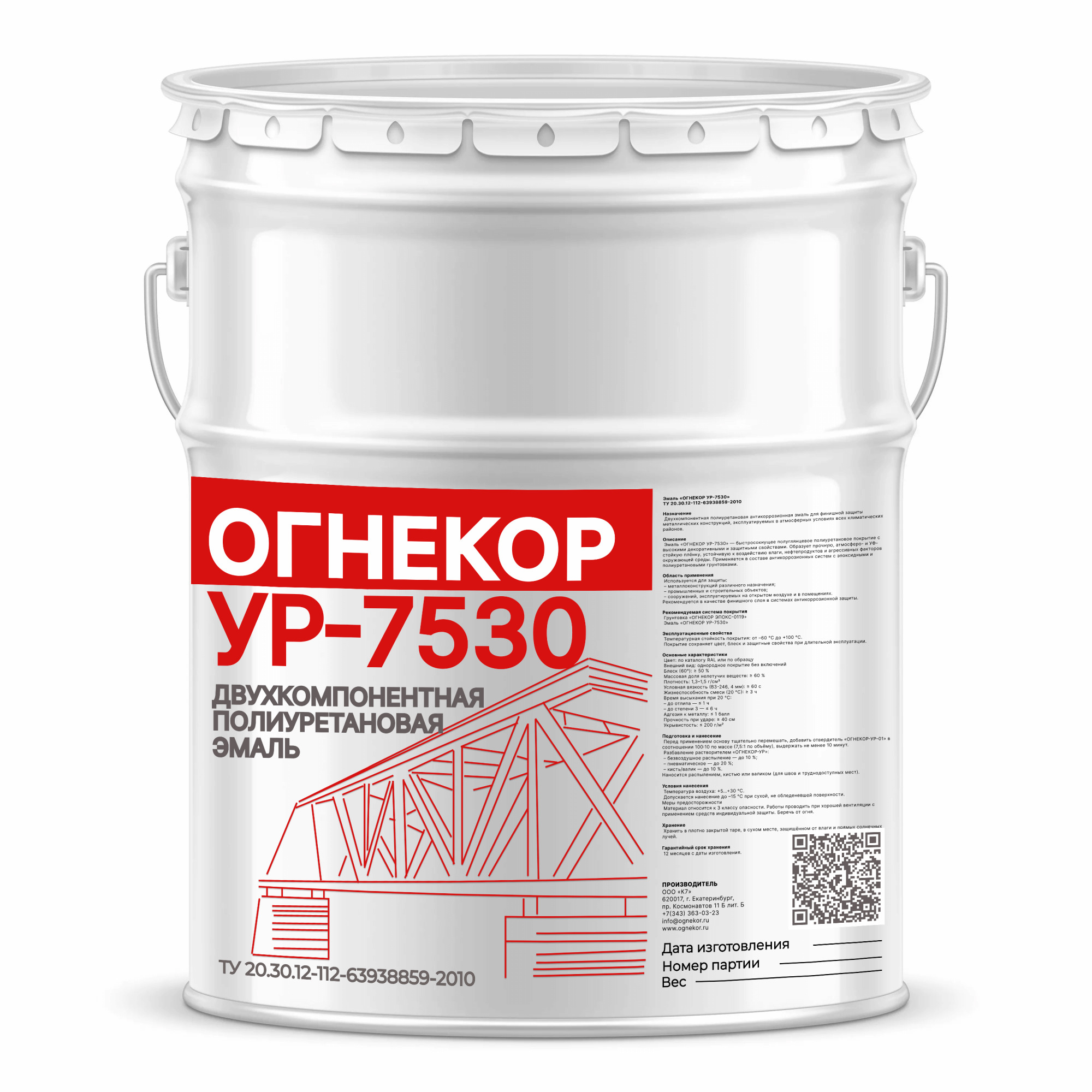 Эмаль ОГНЕКОР УР-7530 представляет собой двухкомпонентный полиуретановый лакокрасочный материал полуглянцевого типа, предназначенный для формирования долговечного защитно-декоративного покрытия металлических конструкций. Покрытие обладает высокой атмосферостойкостью, устойчивостью к УФ-излучению, механической прочностью и коррозионной стойкостью.